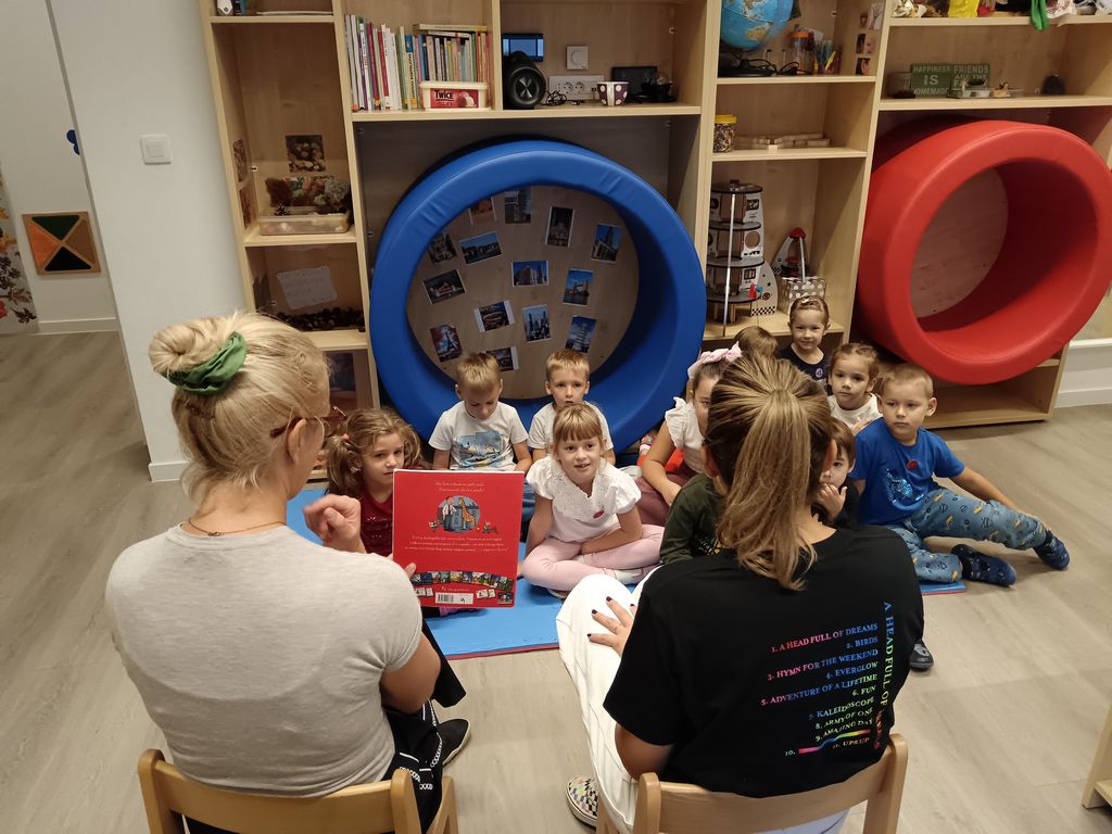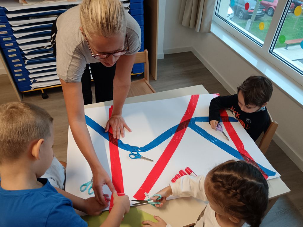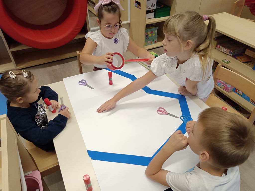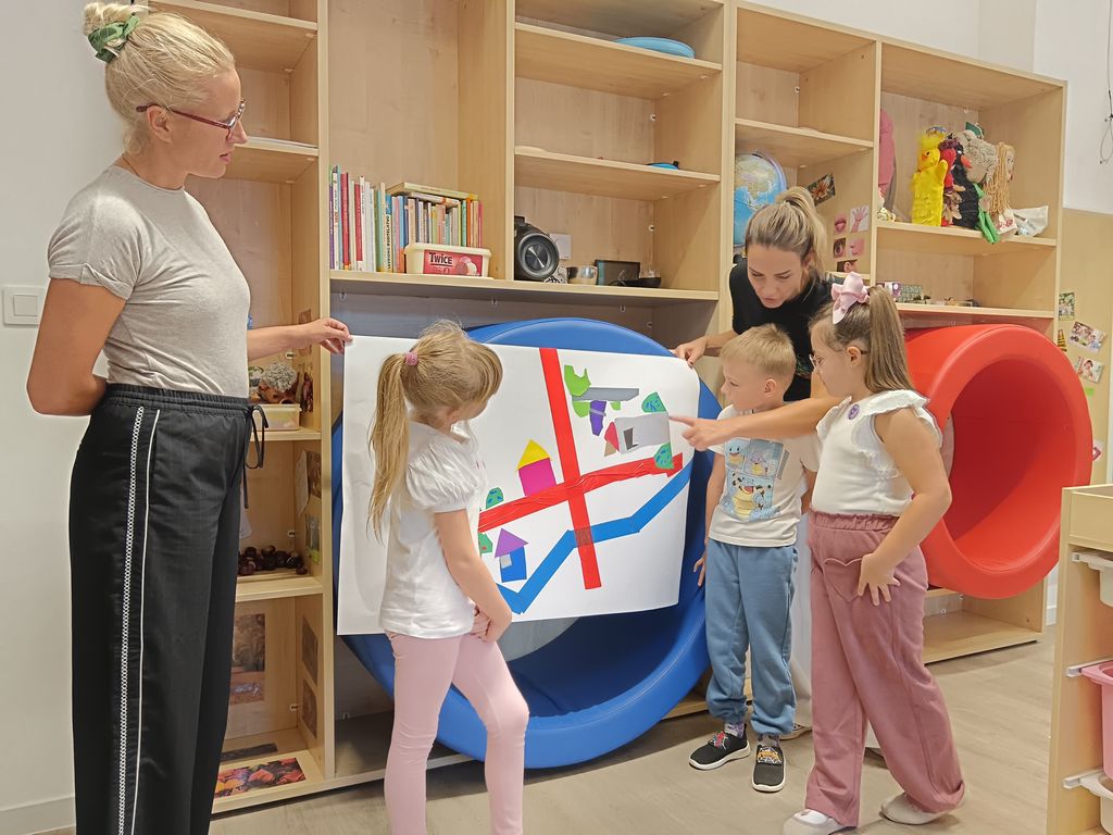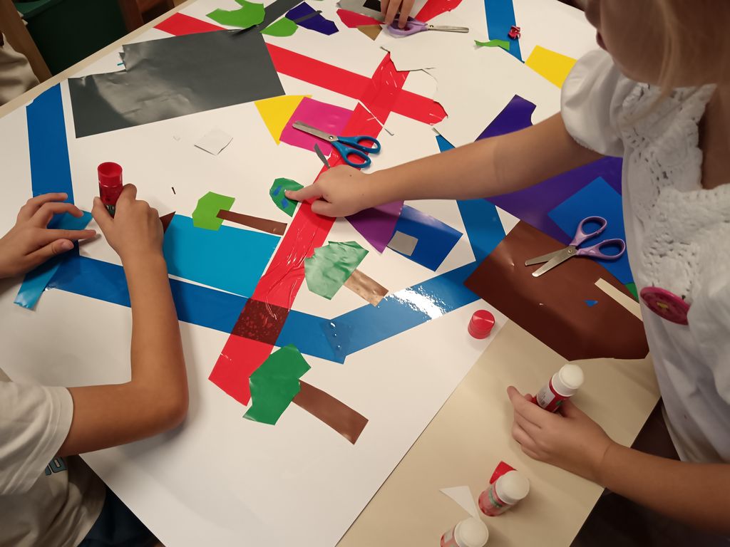 Aktivnost je započela čitanjem slikovnice Najotmjeniji div u gradu (J. Donaldson), nakon čega su djeca, potaknuta pričom, zajednički oblikovala plan zamišljenog grada koristeći ljepljive trake i kolaž papir. Na ovaj su način razvijala prostornu percepciju, suradničke vještine i kreativno izražavanje, istovremeno učeći da se prostor može oblikovati prema njihovim idejama i potrebama.