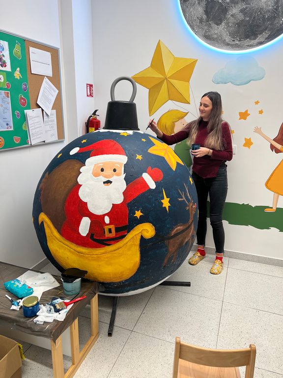 Naše talentirane odgojiteljice Karla i Barbara unijele su pravu čaroliju u grad – oslikale su prekrasnu kuglicu koja će ovih dana krasiti ulice grada Siska. Uz puno mašte, boja i ljubavi prema svom radu, stvorile su jedinstveno malo umjetničko djelo koje će razveseliti i male i velike prolaznike.