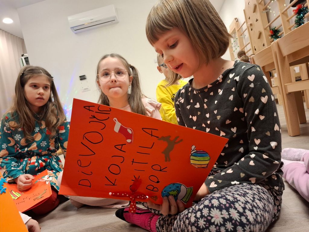 Današnji događaj "Adventa u Zvjezdicama", pričaonica i kreativna radionica, prošao je u vedrom raspoloženju. Odgojiteljice Antonia i Barbara su se pobrinule da mališani uživaju u prigodnim blagdanskim pričama, a prava čarolija je uslijedila kada su djeca krenula u izradu vlastitih božićnih slikovnica i uz pomoć mašte stvorila predivna djela.