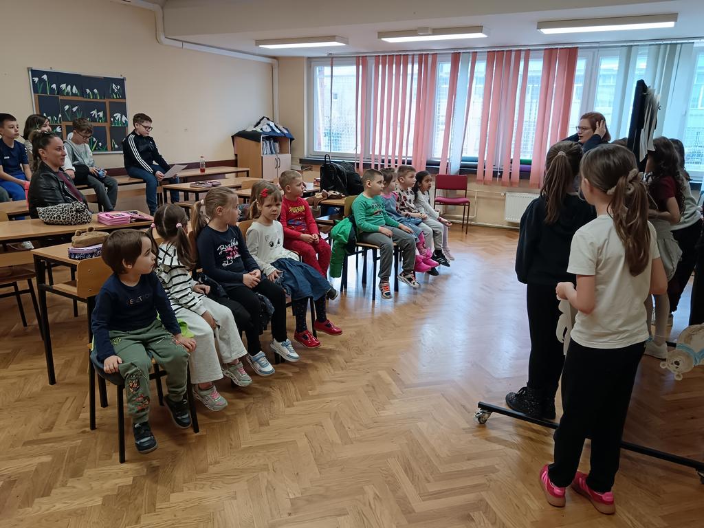 Projektna tema nastavila se i kroz posjet 2.a razredu Osnovna škola 22. lipnja gdje su učenici zajedno sa svojom učiteljicom Ivanka Zukan pripremili igrokaz „Zlatokosa na sudu“. Učenici su u predstavu uključili i djecu iz vrtića koja su dobila važnu ulogu te su postala članovi porote. Zajedno su promišljali o postupcima Zlatokose i raspravljali o tome snosi li odgovornost za svoje ponašanje. Porota je zaključila da Zlatokosa treba popraviti slomljeni stolac, ispričati se obitelji medvjeda te osvijestiti kako ulazak u tuđi dom bez poziva nije prihvatljivo ponašanje.